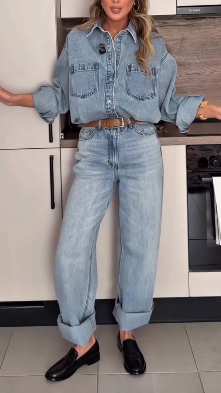 Women Collar Washed Temperament Casual Denim Jumpsuit