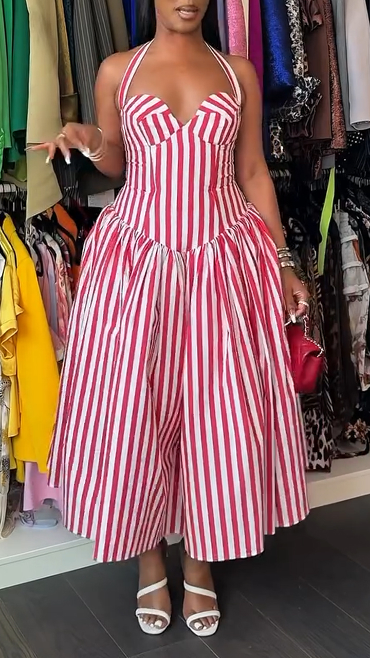 Women Neck Hanging Vertical Stitch Casual Dress
