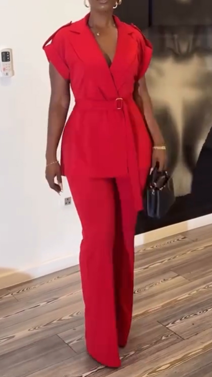 Womens V-neck Jacket+ Pants Casual Set with Temperament