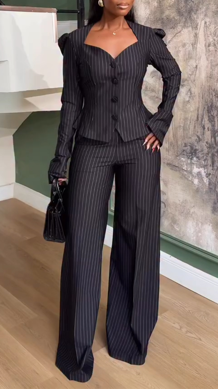 Women Long Sleeved Vertical Breasted Top + Pants Temperament Commuting Suit