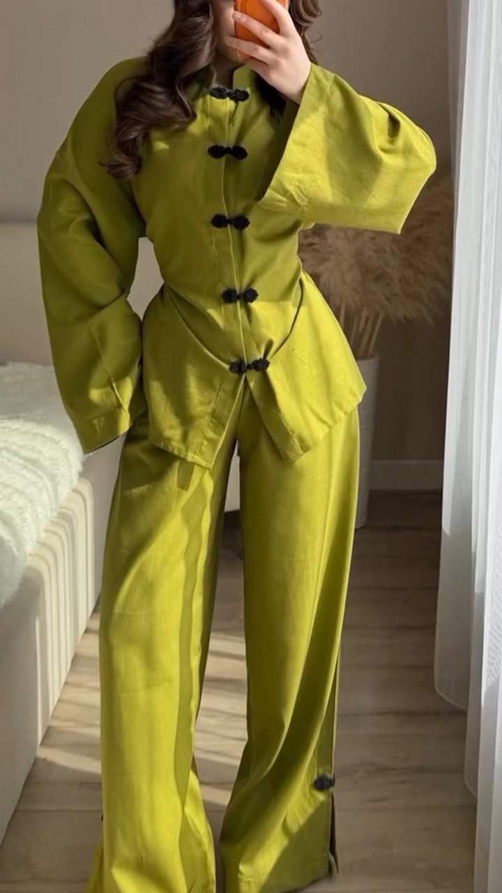 Women Round Neck Breasted Top and Pants New Chinese Casual Suit