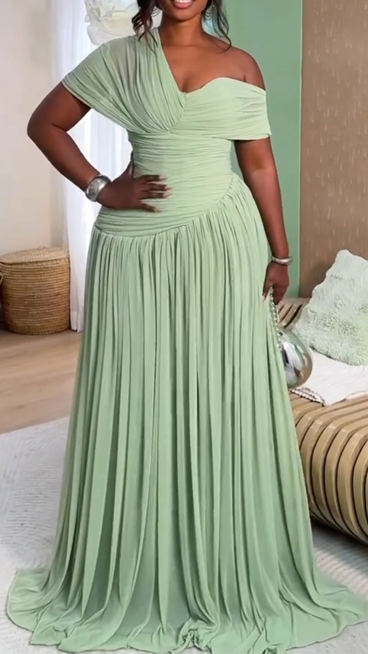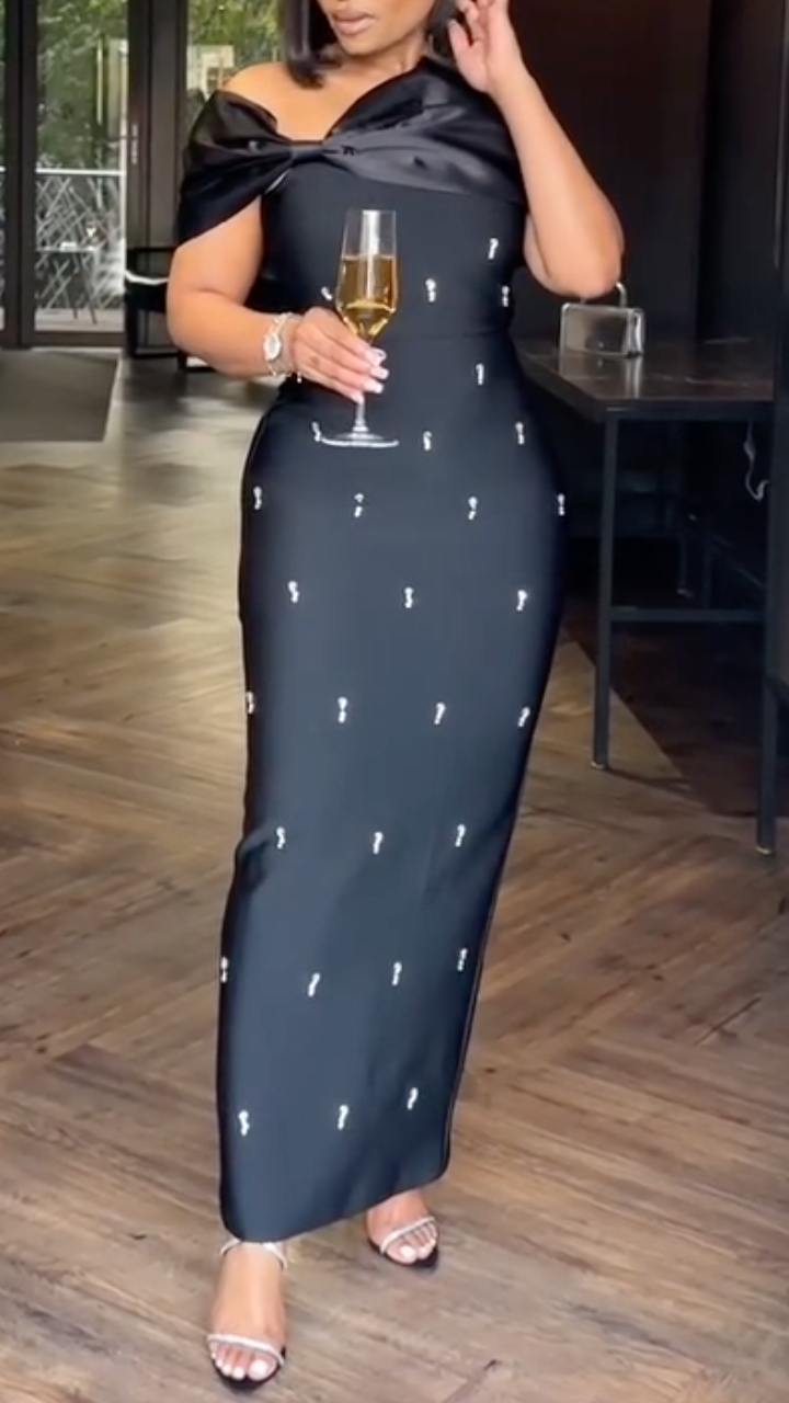 Womens Oblique Neck Solid Color Splicing Elegant Temperament Dinner Party Style Dress