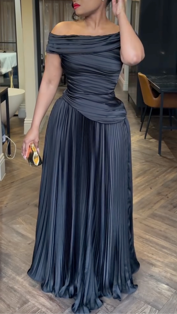 Women Off-shoulder Glossy Elegant Temperament Evening Party Style Dress