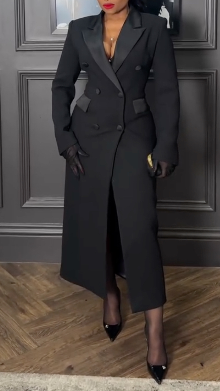 Women's Lapel Suit Dress with Elegant Long Dress
