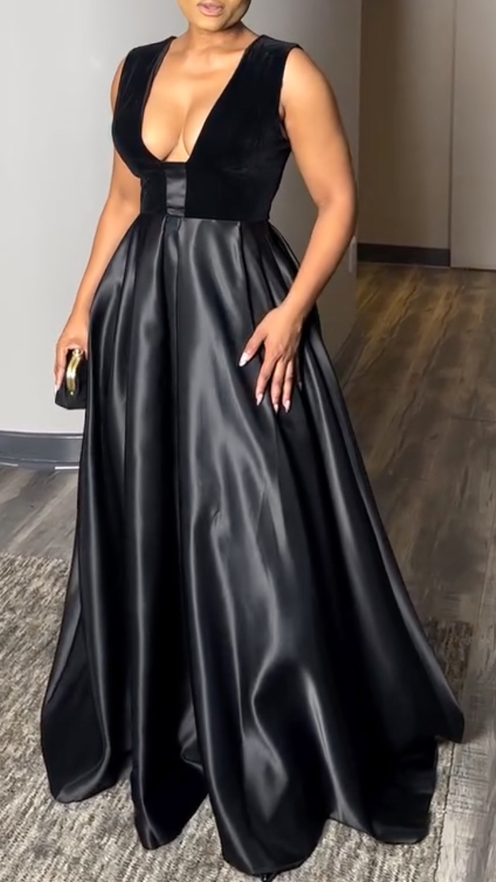 Women's Deep V-neck Fitted Waist Elegant Evening Dress