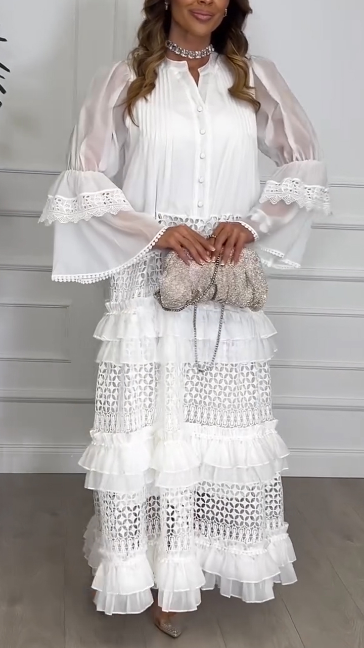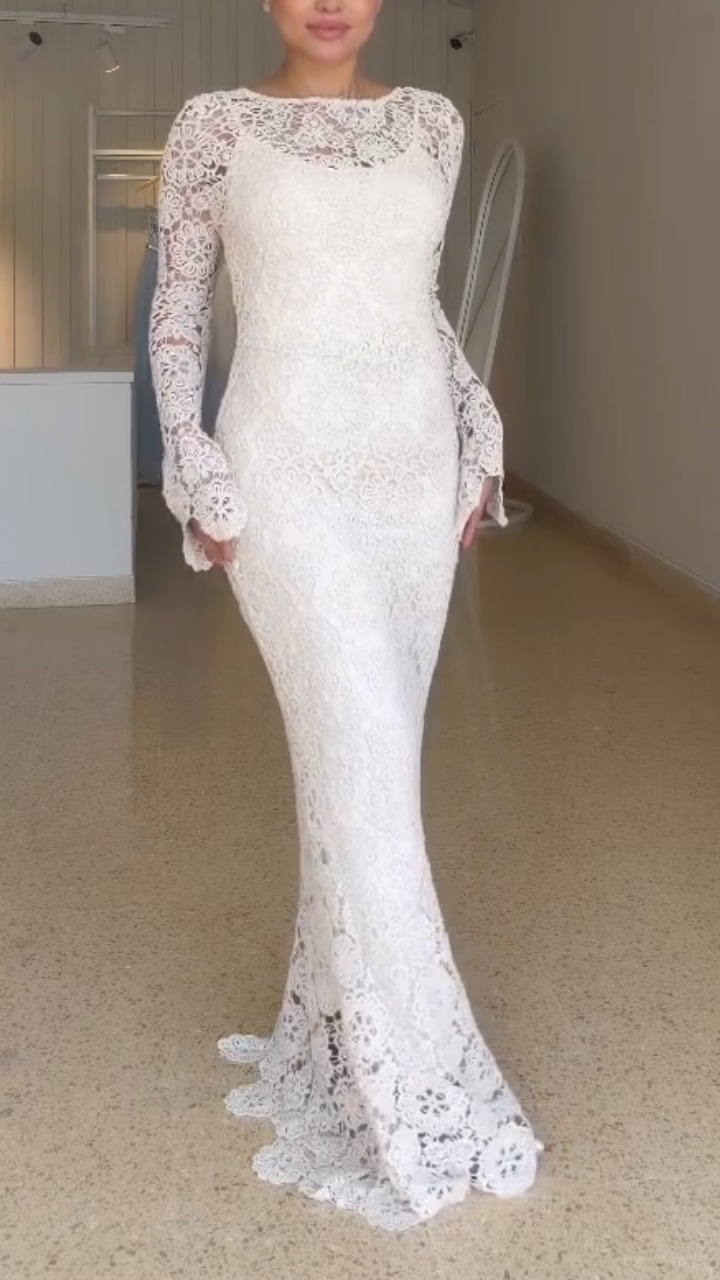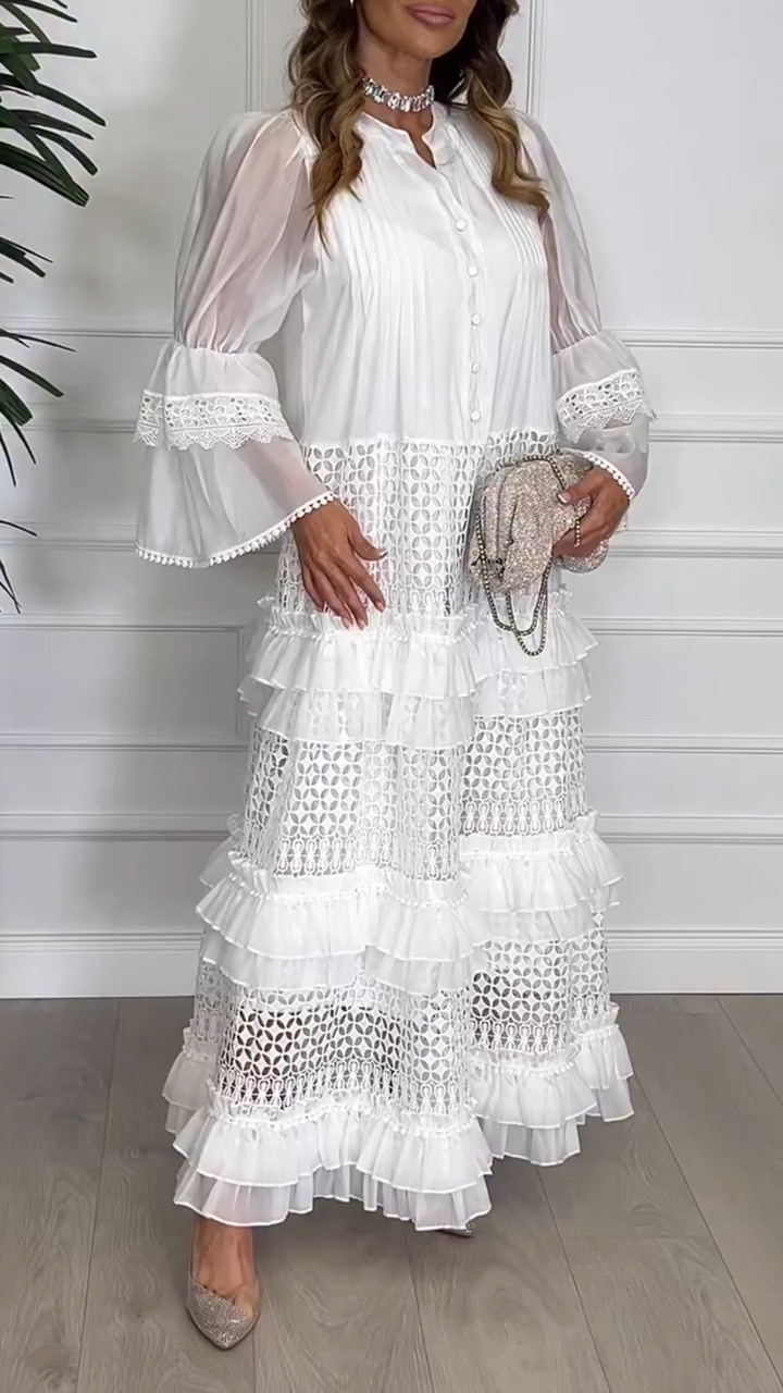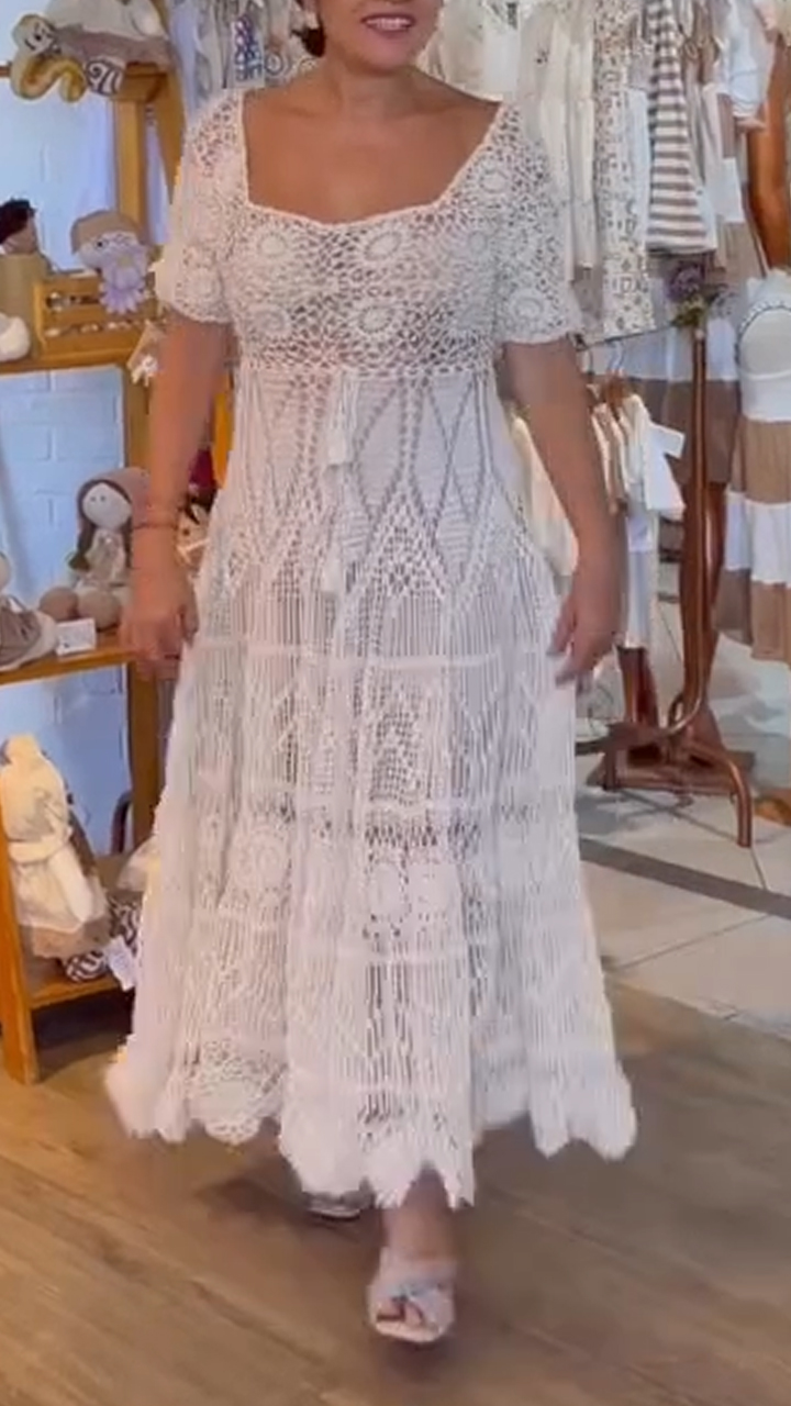 Women Square Neck Lace Solid Color Elegant Casual Dress