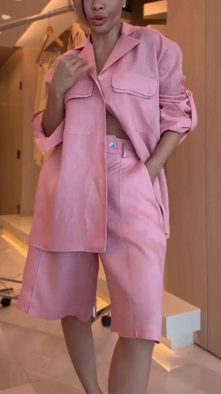 Women Lapel Breasted Top + Shorts Casual Suit