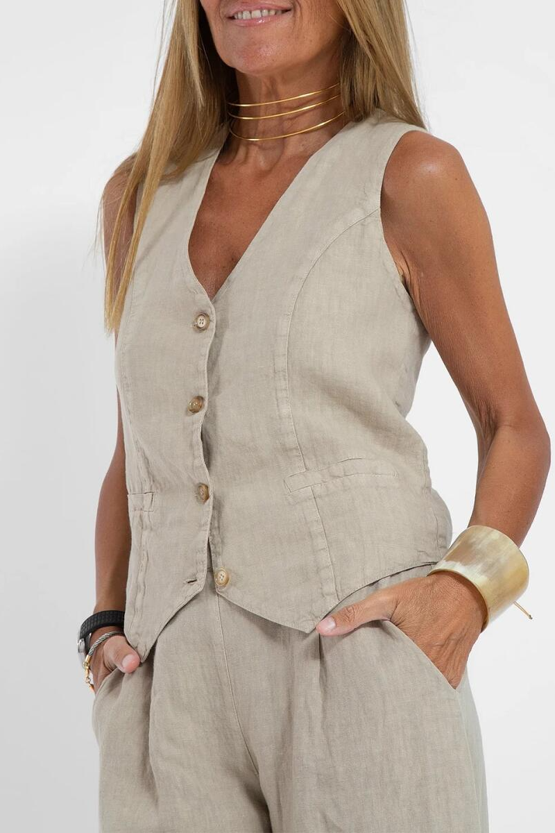 Women V-neck Top + Pants Casual Cotton Linen Set