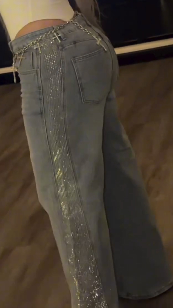 Women Side Stitching Hot Diamond Casual Jeans