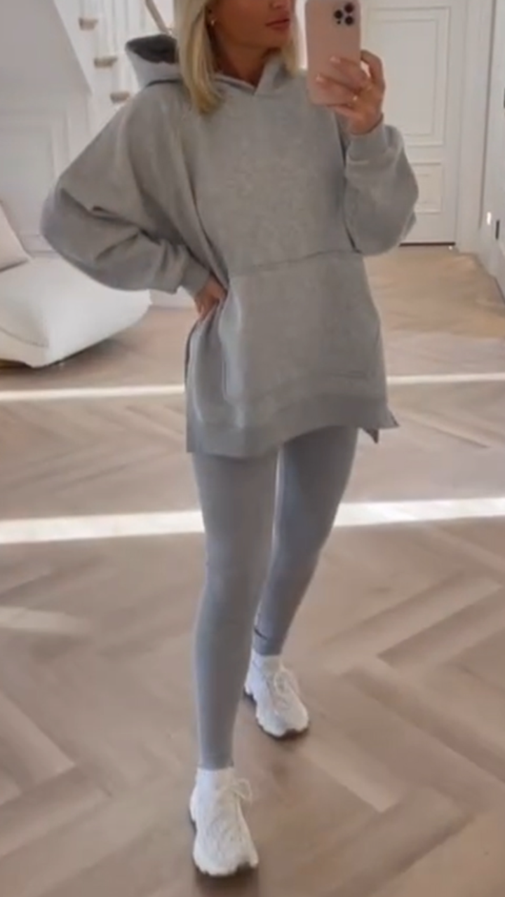 Women Round Neck Hooded Sweatshirt + Pants Casual Suit