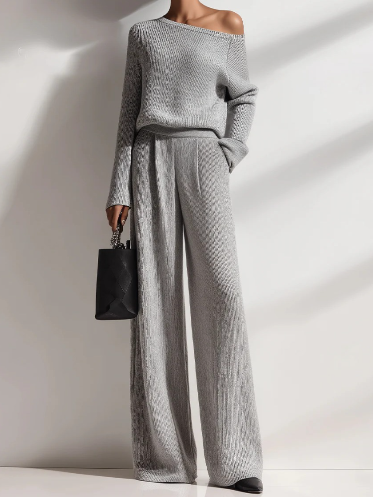 Women Standing Collar Tops + Pants Solid Color Casual Set