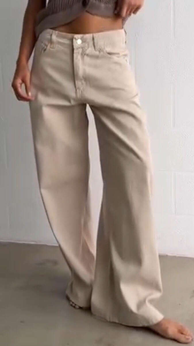 Women Round Neck Top+ Wide Leg Pants Cotton Linen Casual Suit