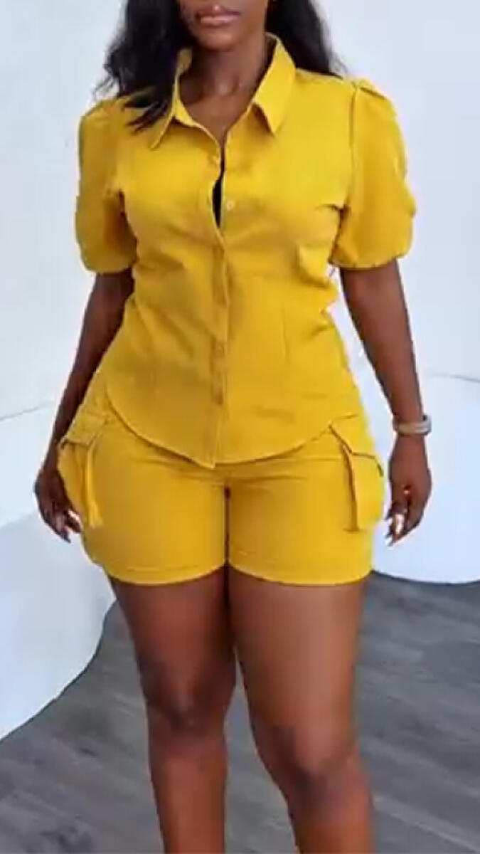 Women Standing Collar Tops + Pants Solid Color Casual Set