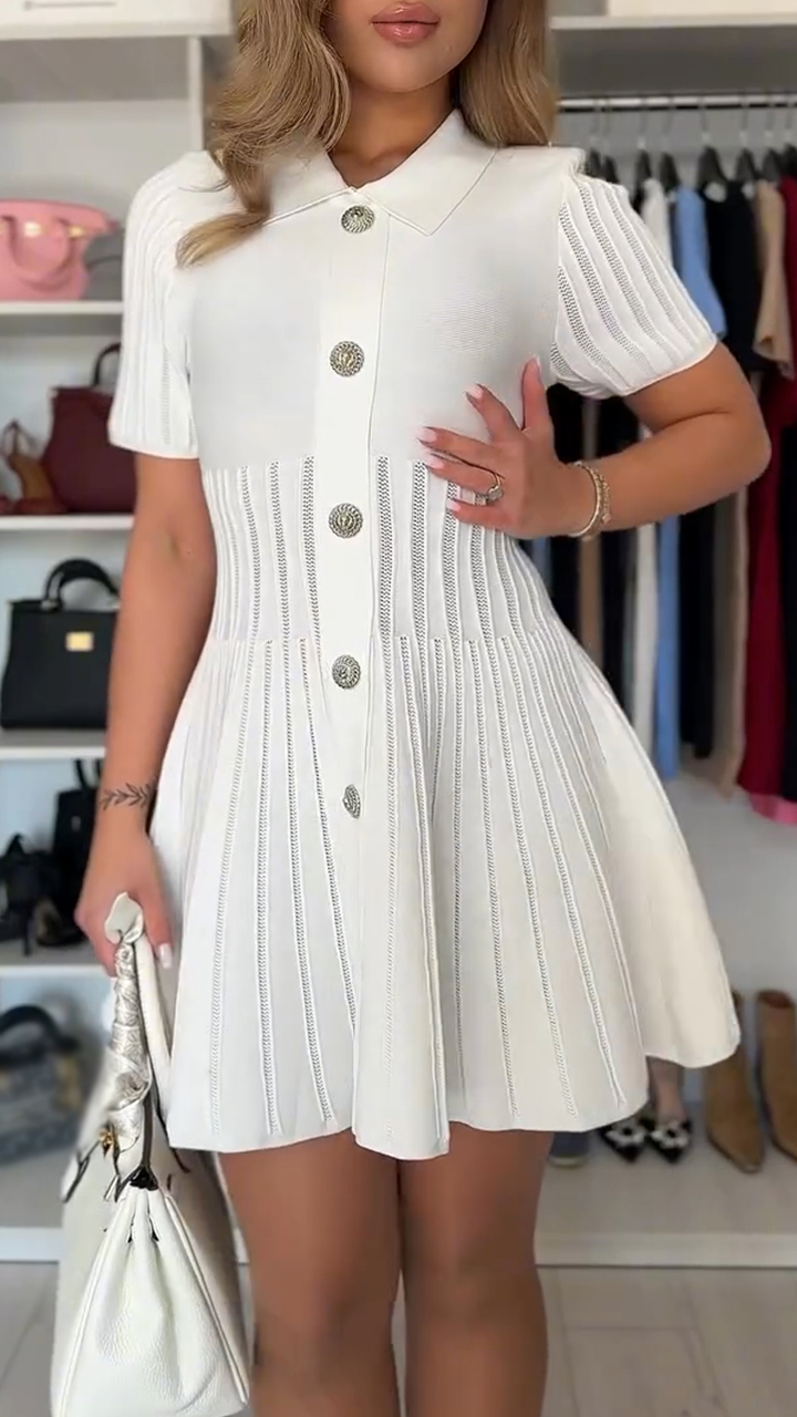 Womens Lapel Row Solid Color Elegant Temperament Dress