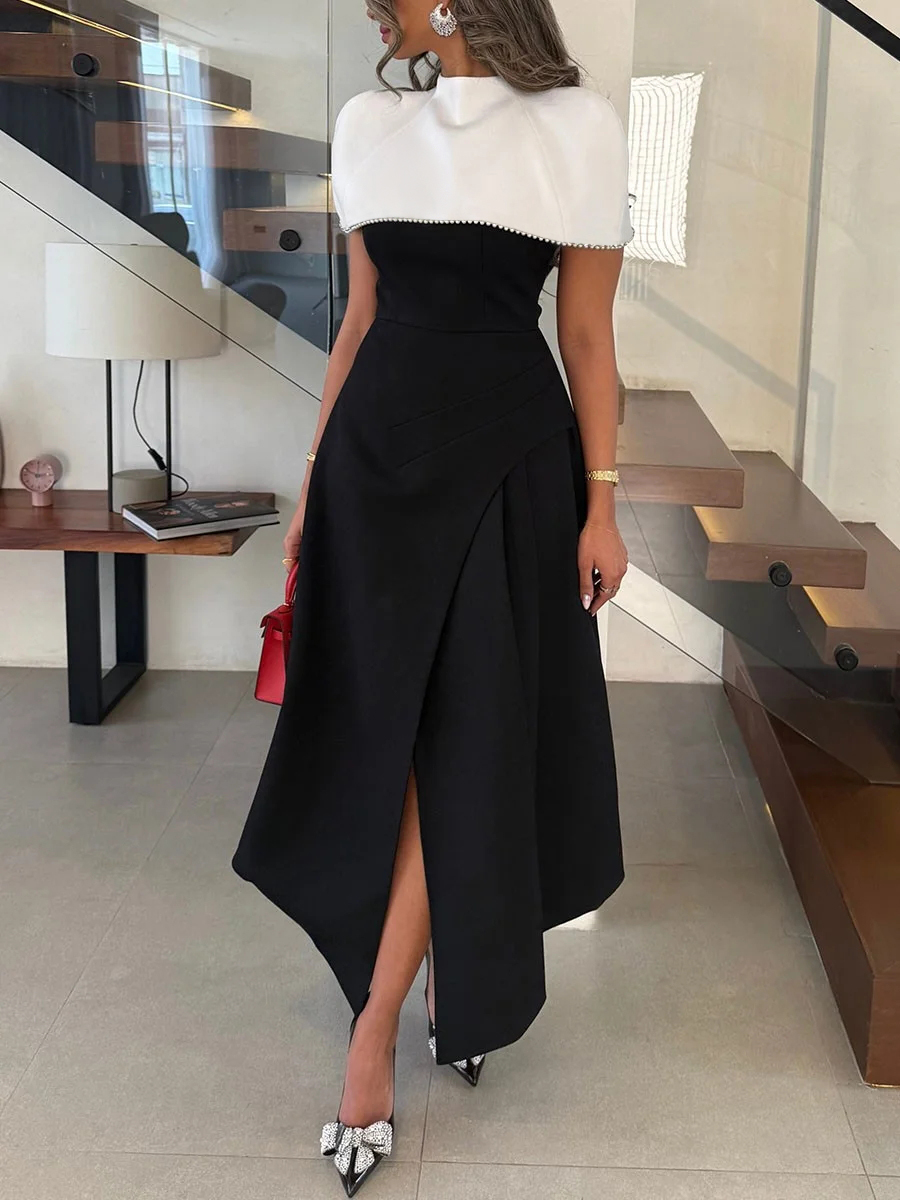 Ladies Round Neck Buckle Patchwork Shawl Elegant Temperament Dinner Dress