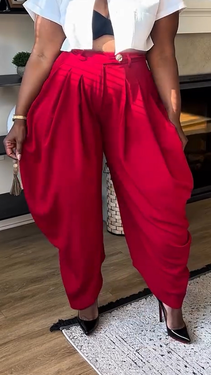 Womens Slanted Collar Irregular Top+ Wide Leg Pants Casual Set with Temperament