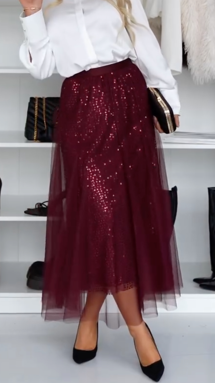 Women's V-neck Sequined Top + Skirt Fashion Set