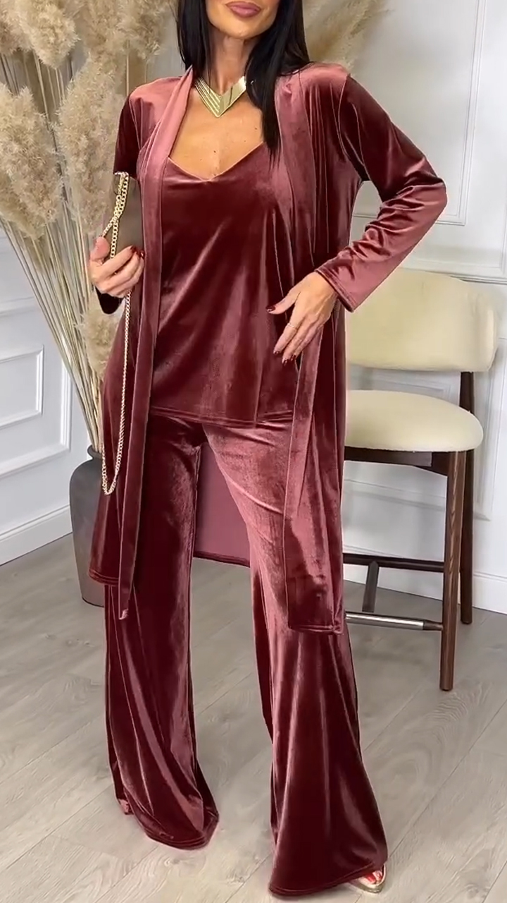 Women's V-neck Suede Camisole 3-piece Casual Suit