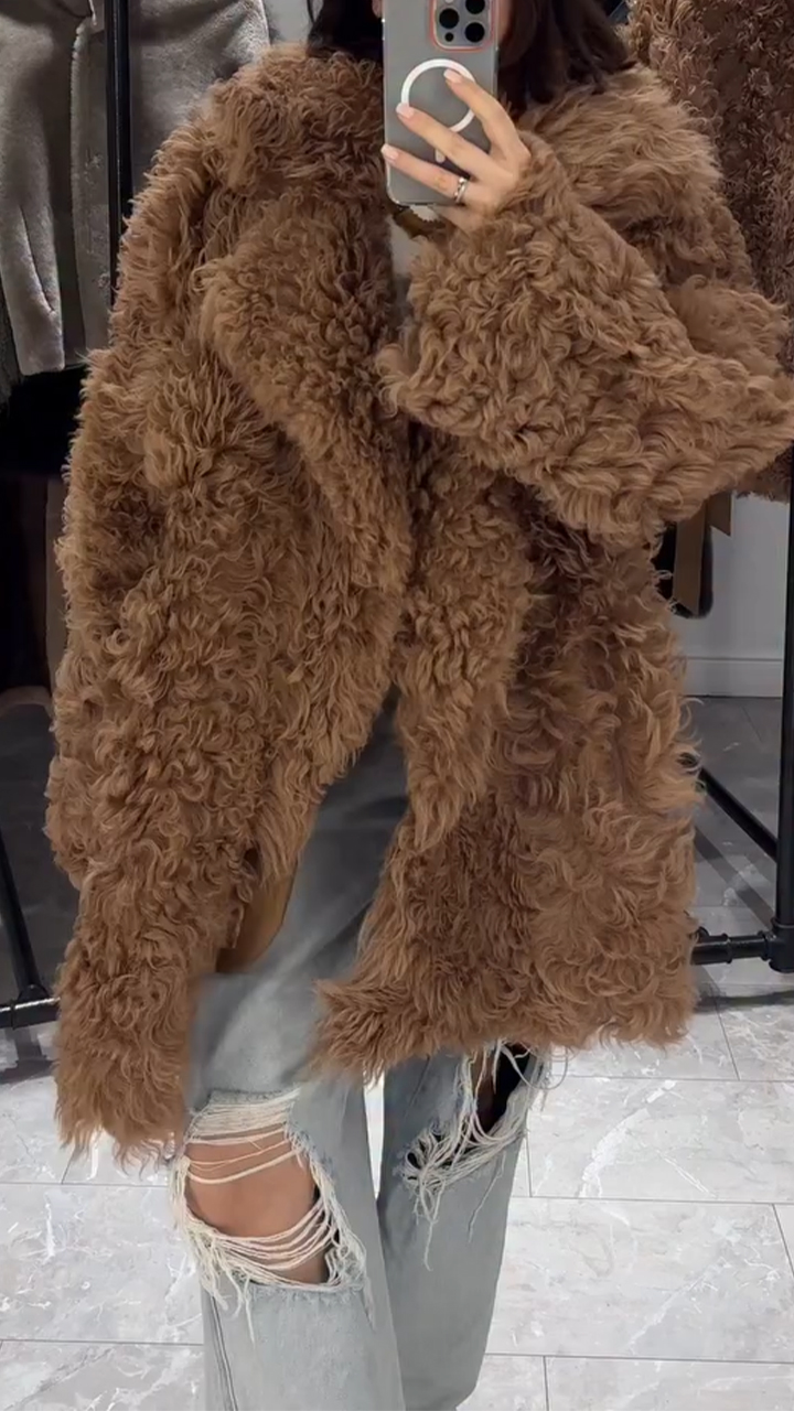 Womens Laple Collar Solid Color Temperament Casual Plush Coat